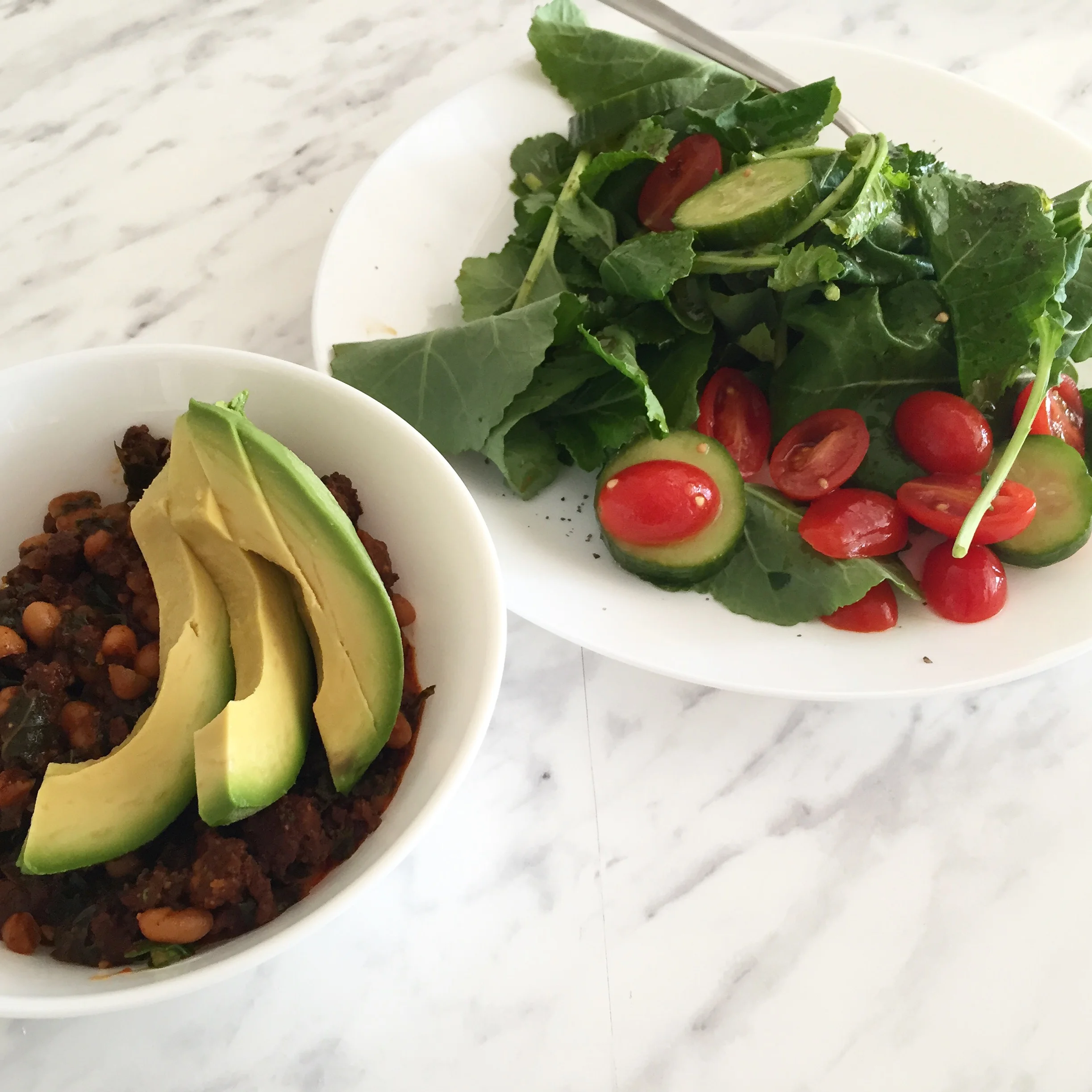 The Good Stuff: We like to top our chili with avocado. Other options include cilantro, a sprinkling of cheese, and some Beanitos chips. Add what you like!