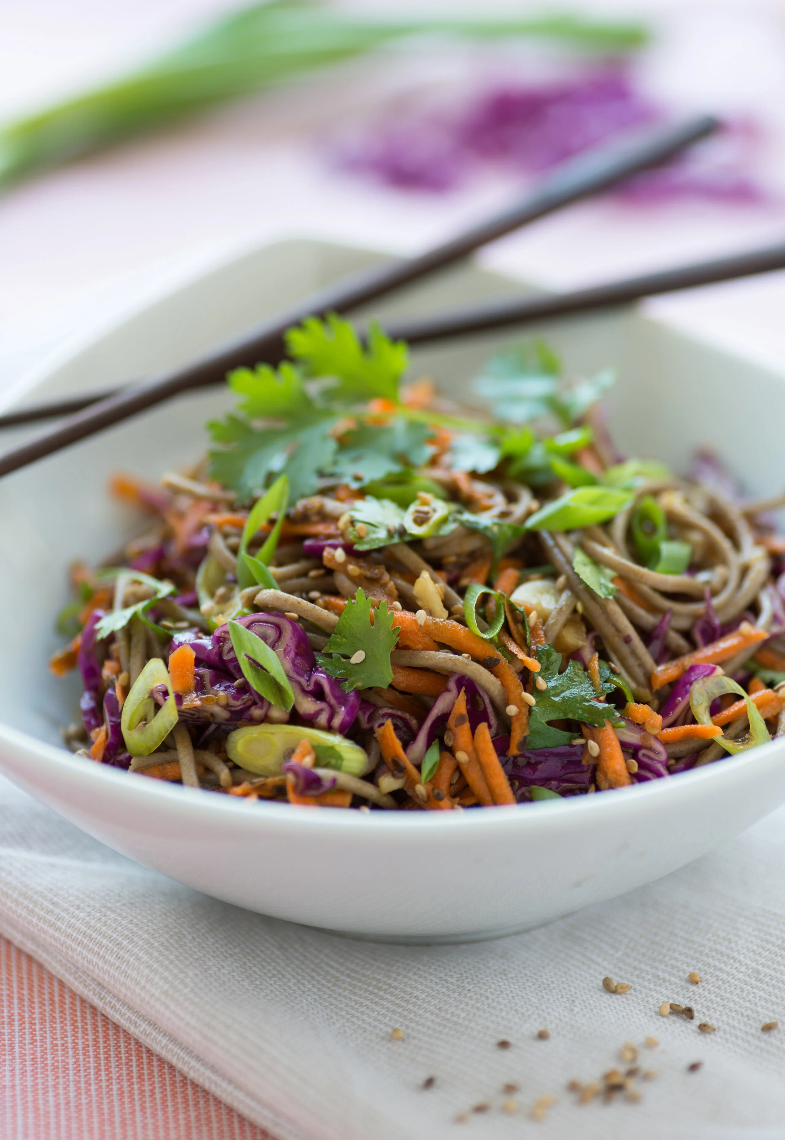 - Drain and rinse cooked soba noodles in cold water until cooled, drain well.