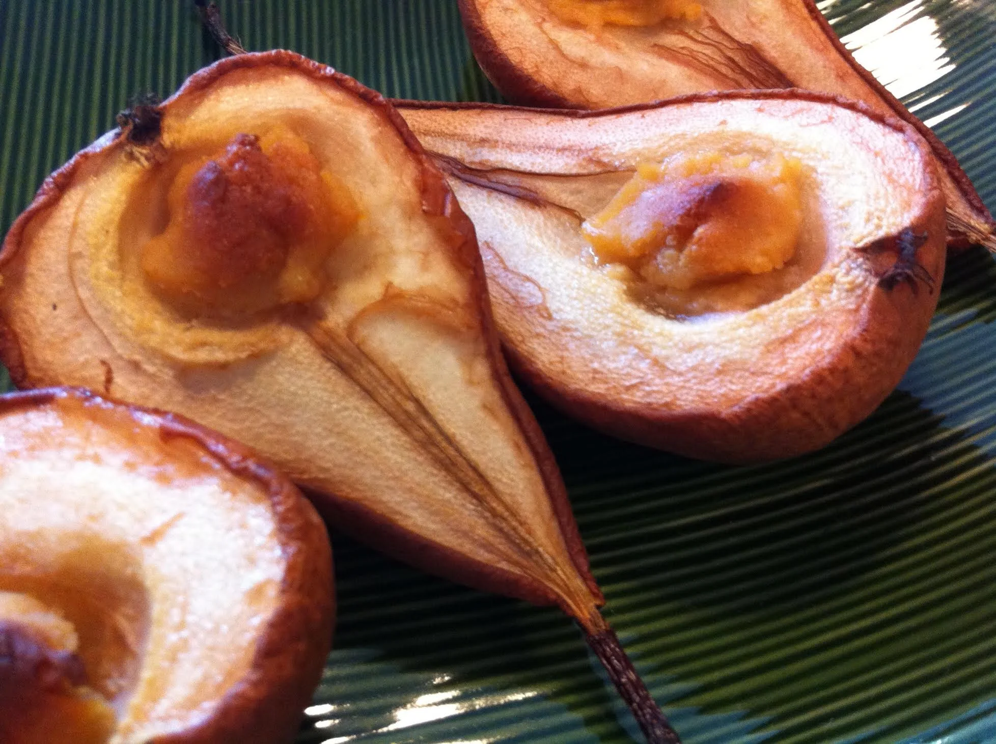 Try these for dessert, as a snack, or serve on top of salad. The sweet white miso mimics the tangy and salty blue cheeses often paired with pears. You can find miso in the refrigerated/dairy section at Whole Foods or Central Market.